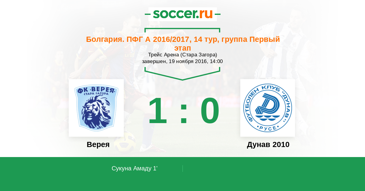 Верея - Дунав 2010: обзор матча 19 ноября 2016