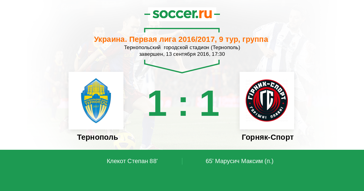 Тернополь - Горняк-Спорт: обзор матча 13 сентября 2016