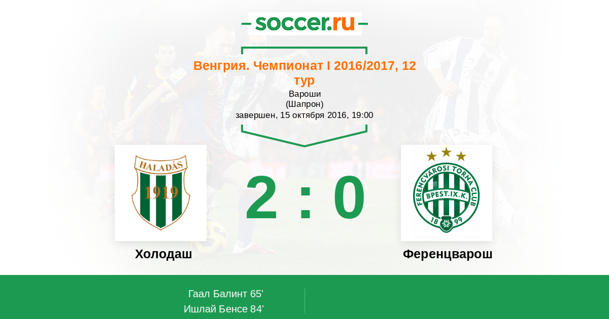 Холодаш - Ференцварош: обзор матча 15 октября 2016