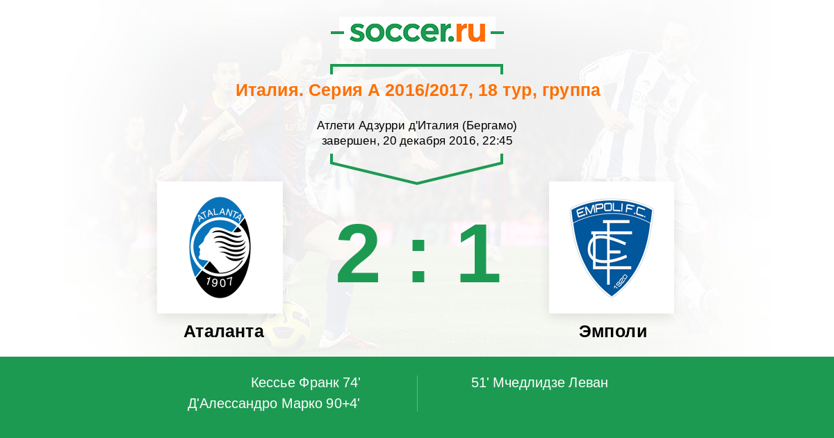| 18. | Эмполи | 19 | 5 | 4 | 10 | 5 | 16:29 | 19 |
