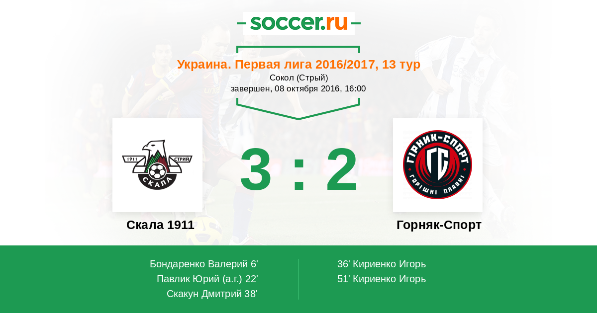 Скала 1911 - Горняк-Спорт: обзор матча 8 октября 2016