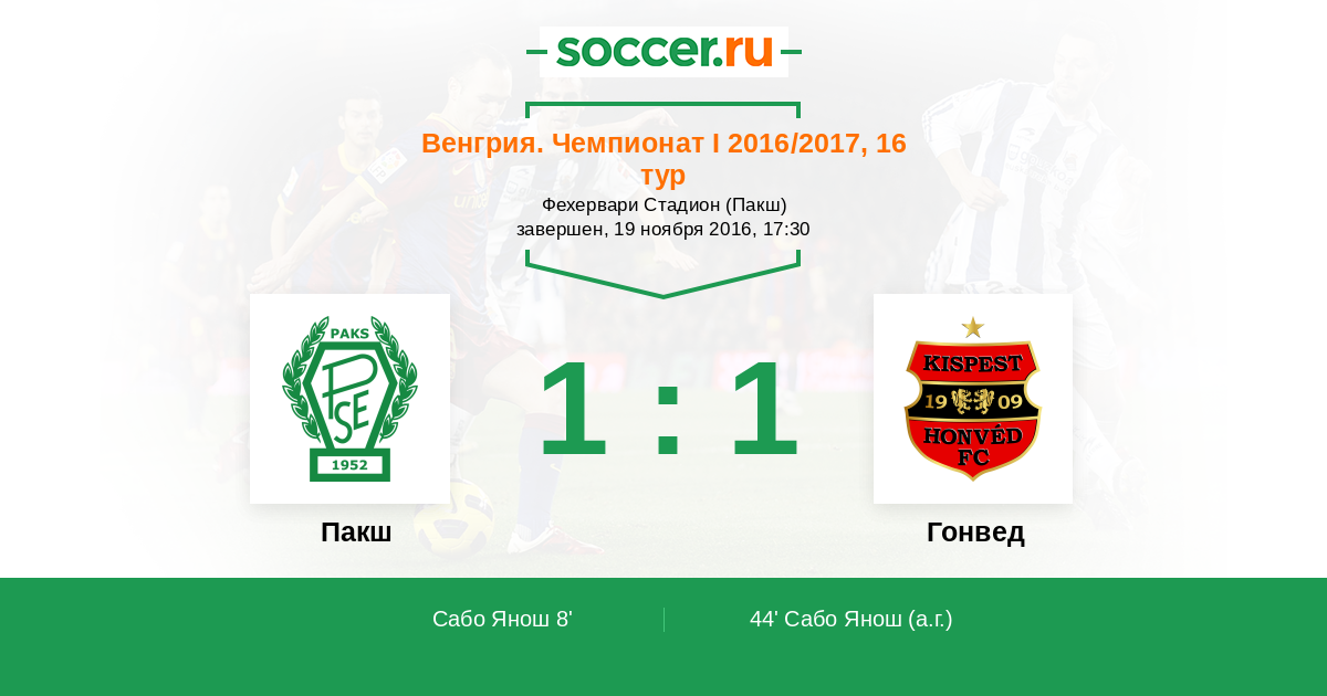 Пакш - Гонвед: обзор матча 19 ноября 2016