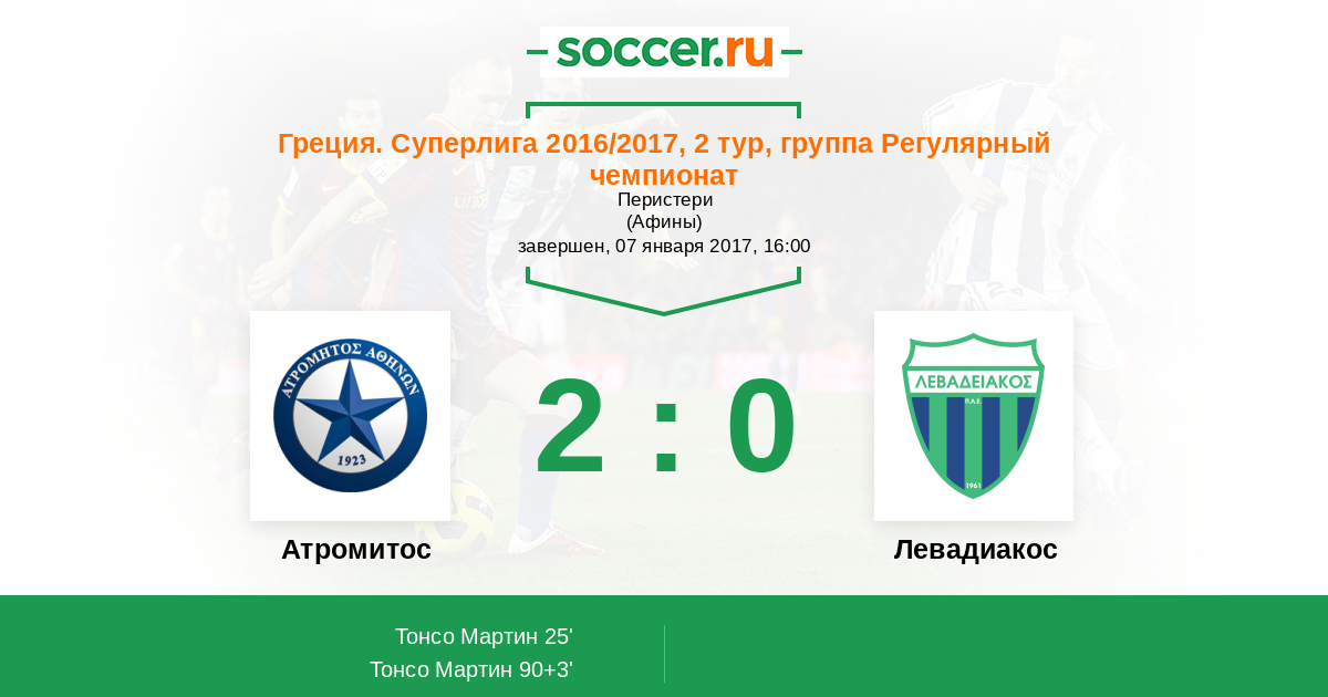 Атромитос - Левадиакос: обзор матча 7 января 2017