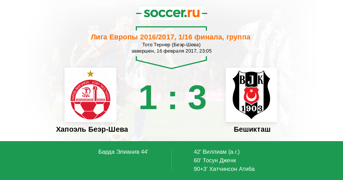 Хапоэль Беэр-Шева - Бешикташ: обзор матча 16 февраля 2017