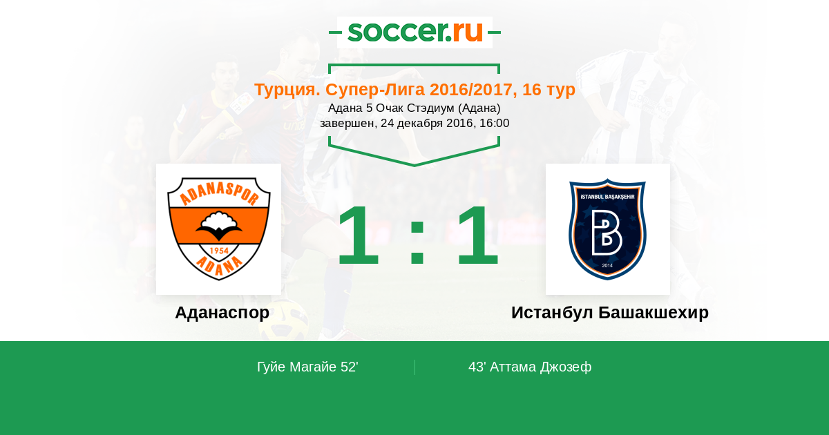 Аданаспор - Истанбул Башакшехир: обзор матча 24 декабря 2016