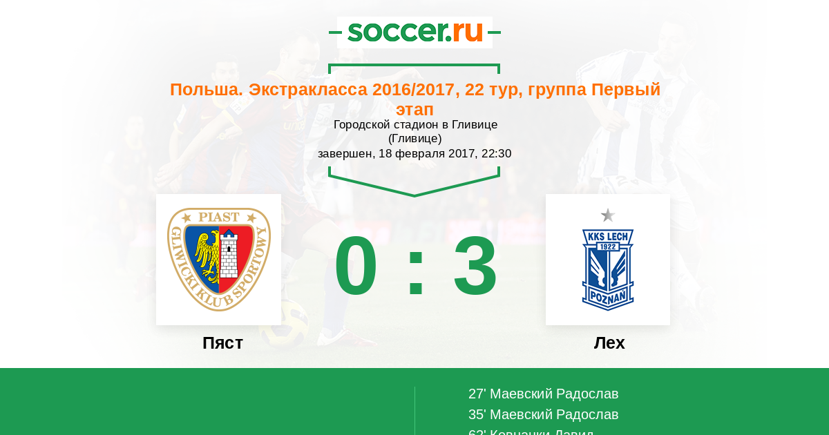 Пяст - Лех: обзор матча 18 февраля 2017