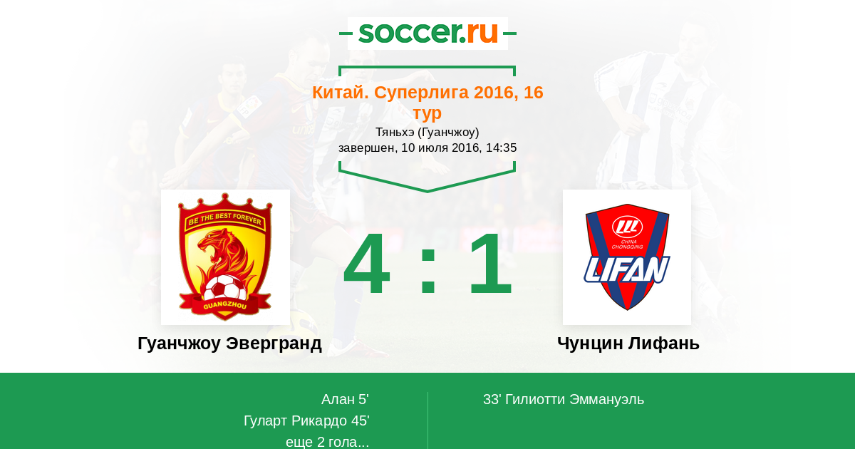 Гуанчжоу Эвергранд - Чунцин Лифань: обзор матча 10 июля 2016