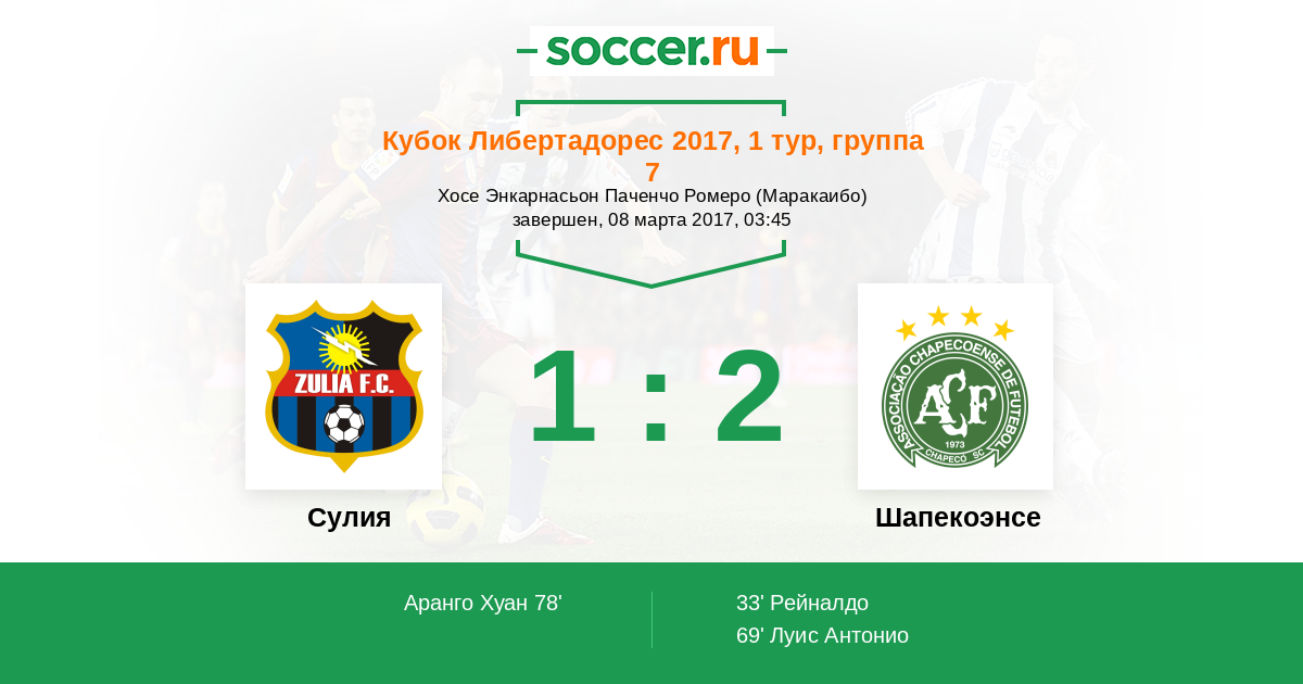 Сулия - Шапекоэнсе: обзор матча 8 марта 2017
