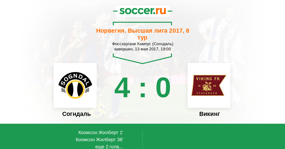 Согндаль - Викинг: обзор матча 13 мая 2017