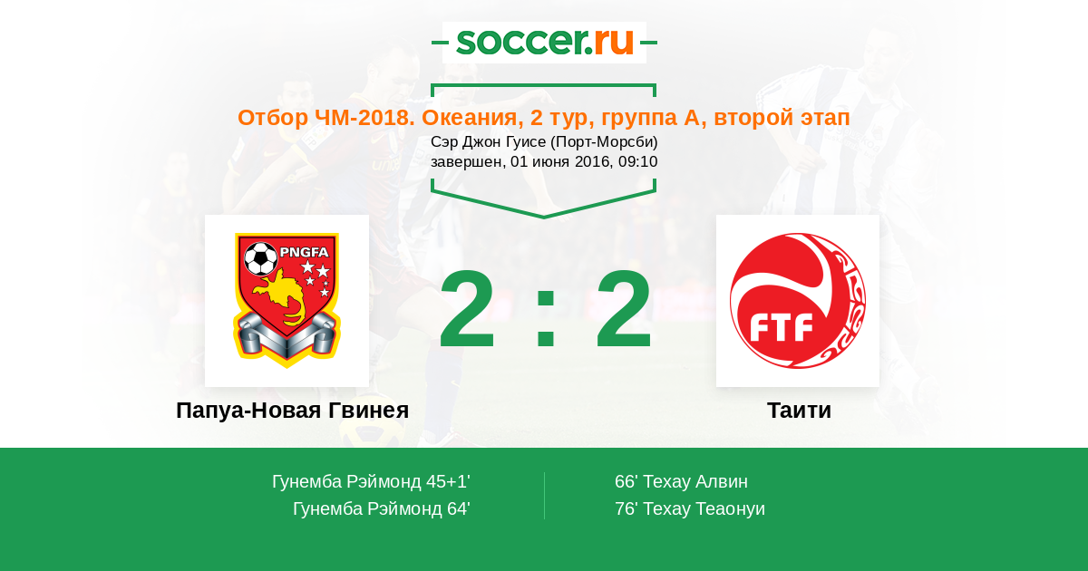 | 2. | Таити | 4 | 2 | 0 | 2 | 1 | 7:4 | 6 |