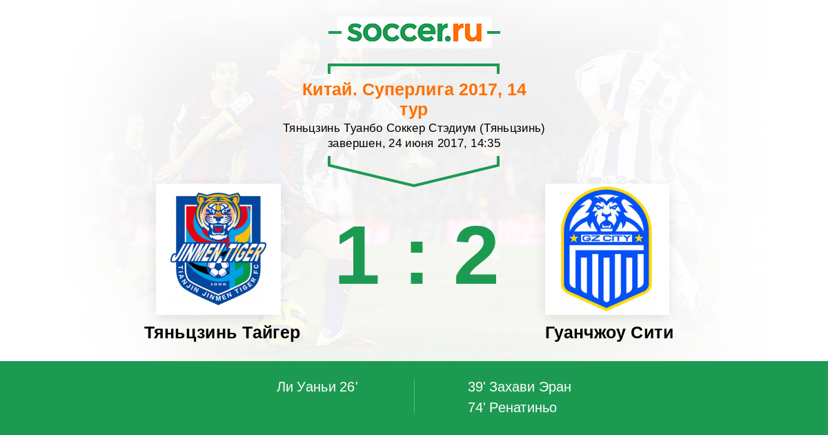 Тяньцзинь Тайгер - Гуанчжоу Сити: обзор матча 24 июня 2017