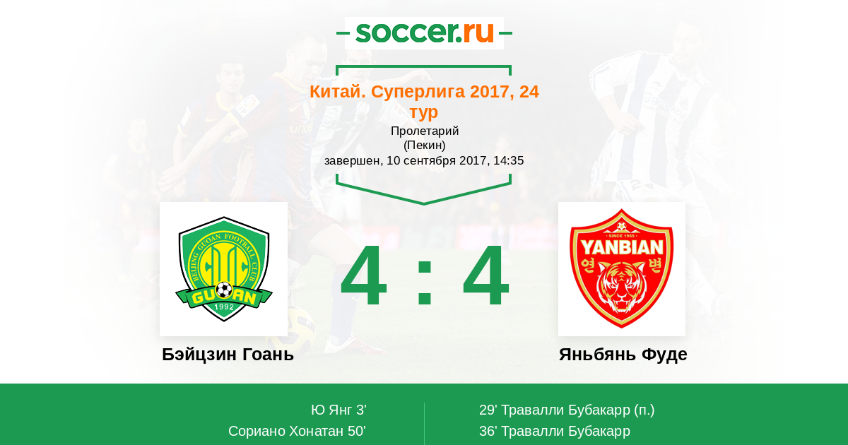 Бэйцзин Гоань - Яньбянь Фуде: обзор матча 10 сентября 2017