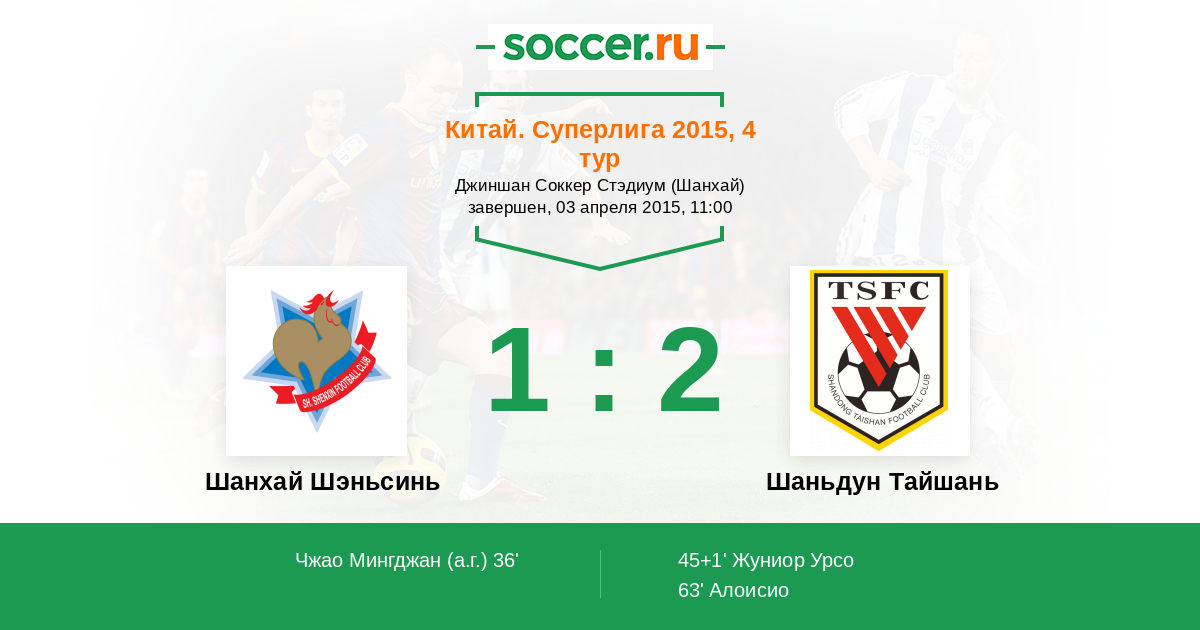 Шанхай Шэньсинь - Шаньдун Тайшань: обзор матча 3 апреля 2015
