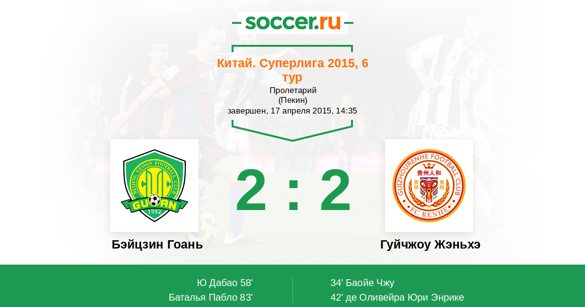 Бэйцзин Гоань - Гуйчжоу Жэньхэ: обзор матча 17 апреля 2015