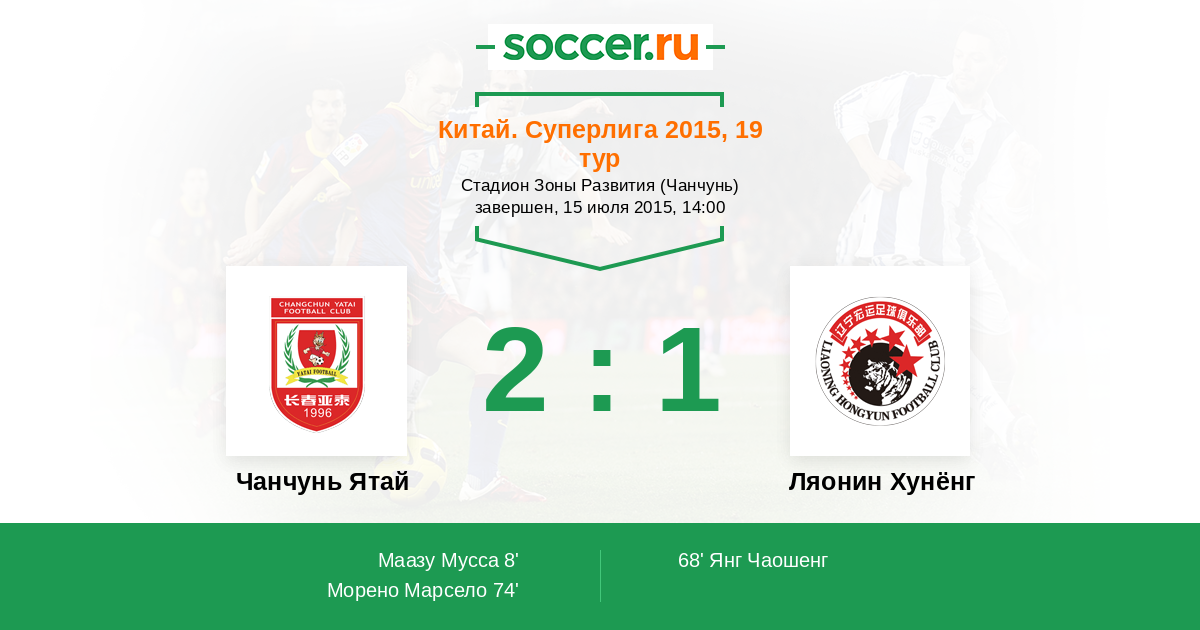 | 14. | Чунцин Лифань | 15 | 4 | 5 | 6 | 2 | 19:24 | 17 |