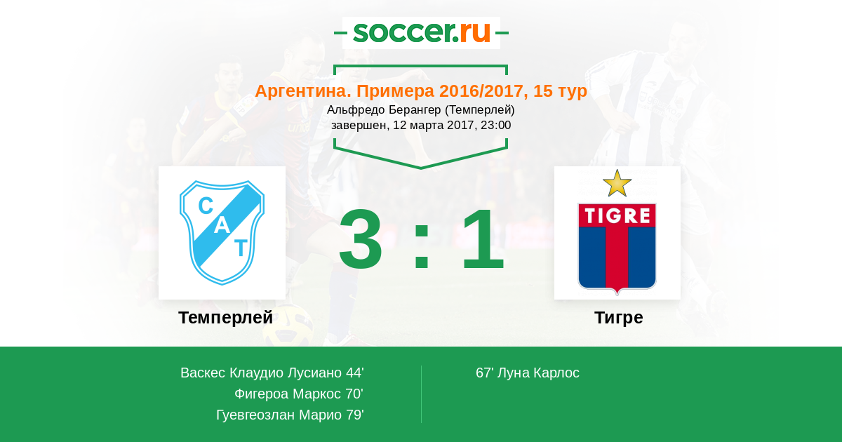 Темперлей - Тигре: обзор матча 12 марта 2017
