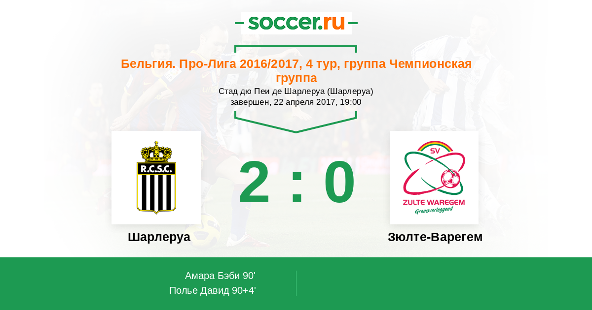 Шарлеруа | 30 | 13 | 10 | 7 | 10 | 33:26 | 49 |