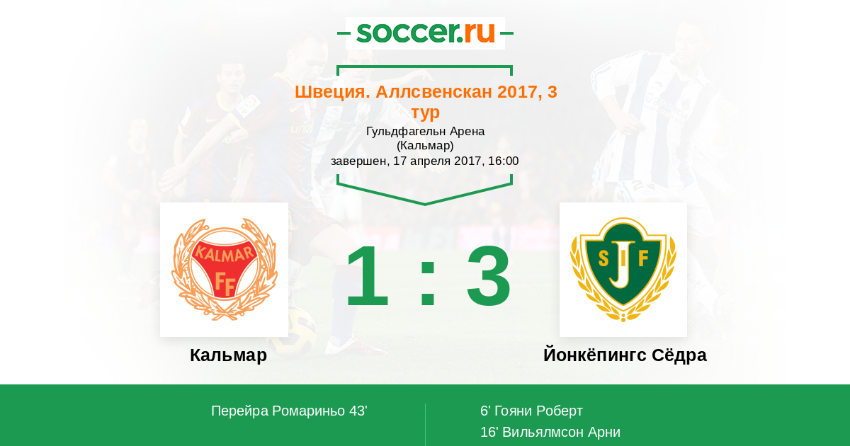 Кальмар - Йонкёпингс Сёдра: обзор матча 17 апреля 2017