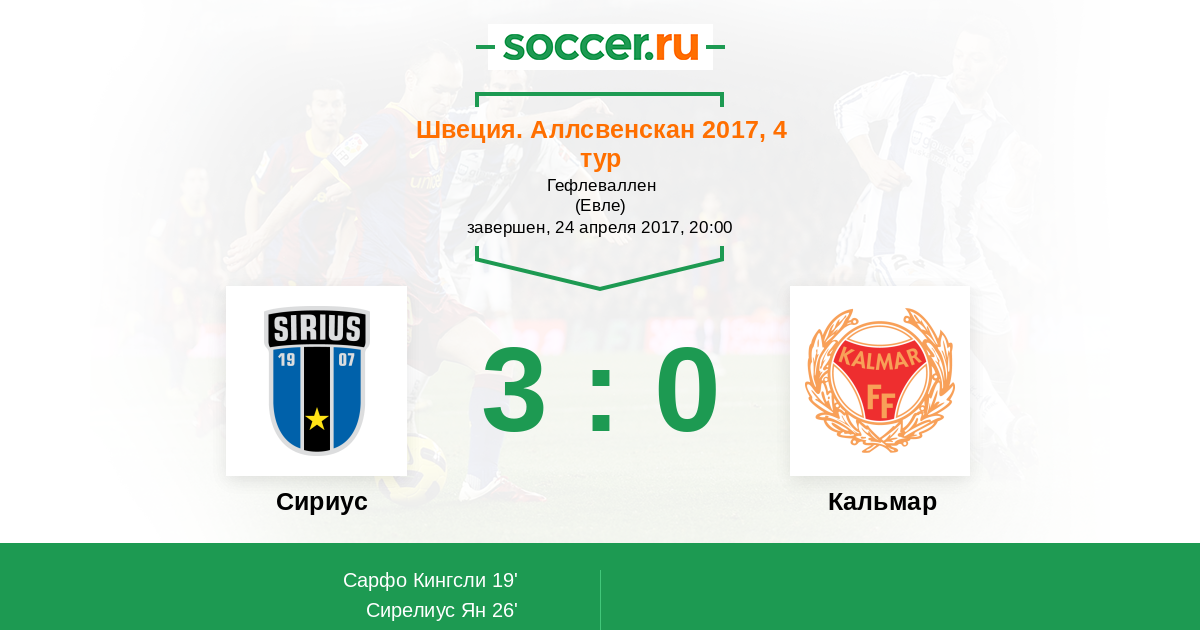 Сириус - Кальмар: обзор матча 24 апреля 2017