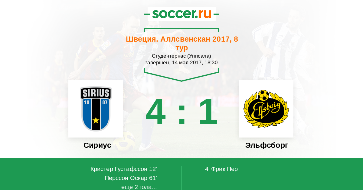 Сириус - Эльфсборг: обзор матча 14 мая 2017