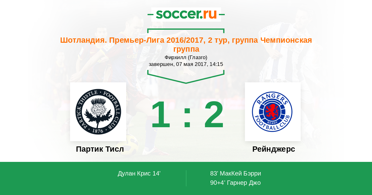 Партик Тисл - Рейнджерс: обзор матча 7 мая 2017