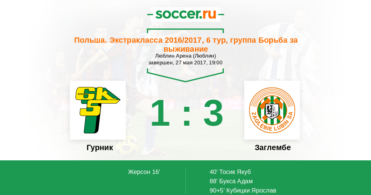 Гурник - Заглембе: обзор матча 27 мая 2017