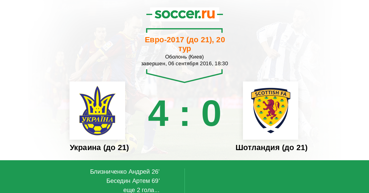 Украина (до 21) - Шотландия (до 21): обзор матча 6 сентября 2016