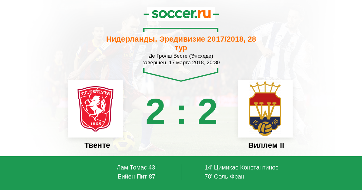 Твенте - Виллем II: обзор матча 17 марта 2018