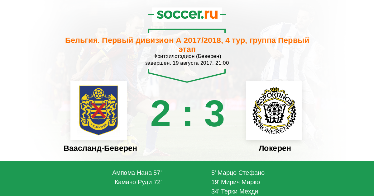 Локерен | 30 | 8 | 7 | 15 | 5 | 33:49 | 31 |