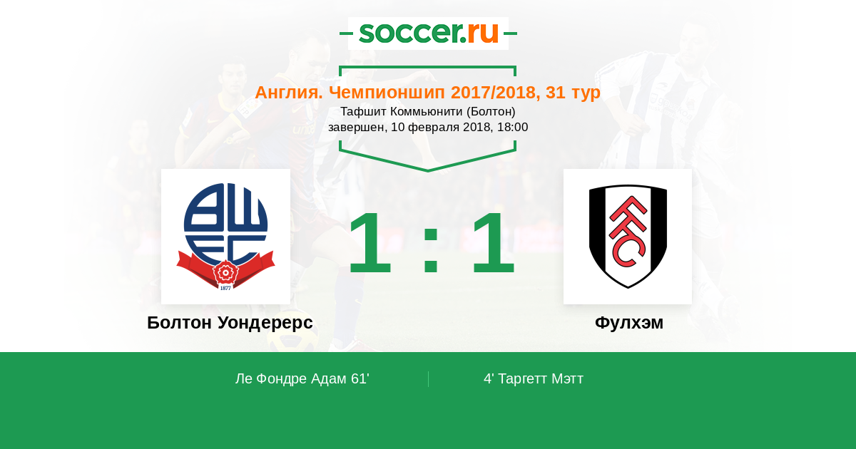 Болтон Уондерерс - Фулхэм: обзор матча 10 февраля 2018