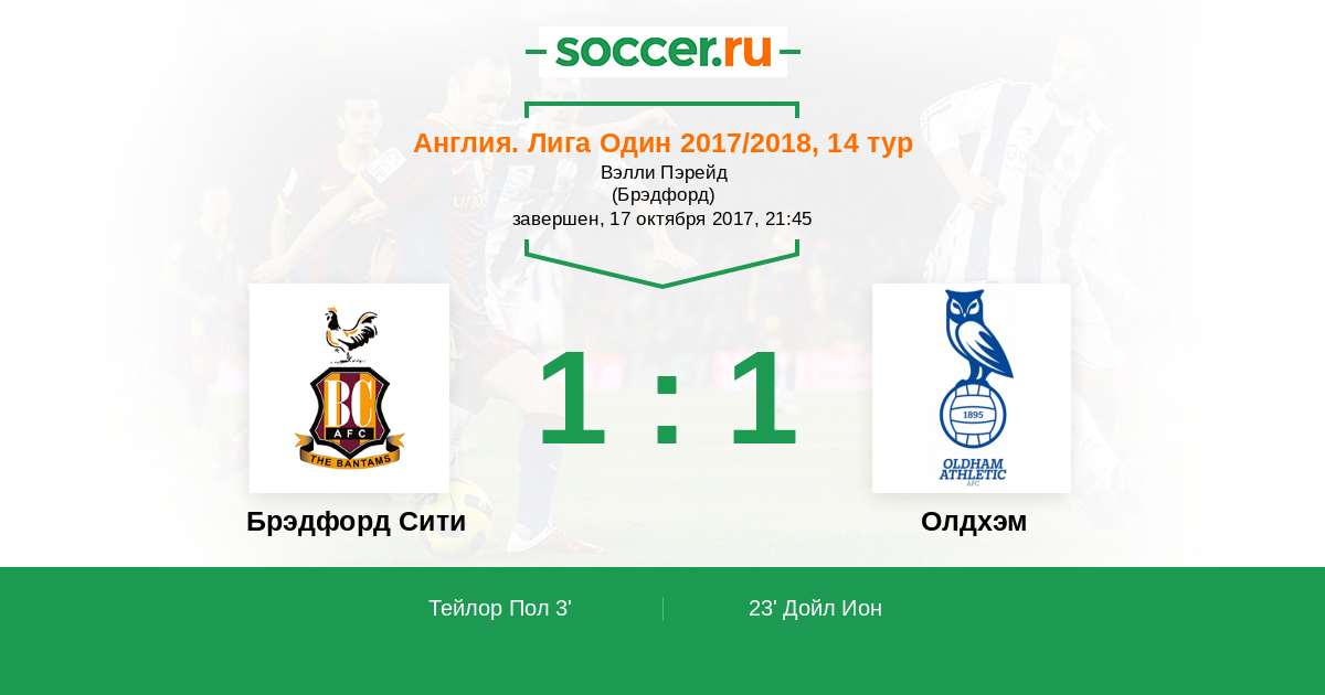 Брэдфорд Сити - Олдхэм: обзор матча 17 октября 2017