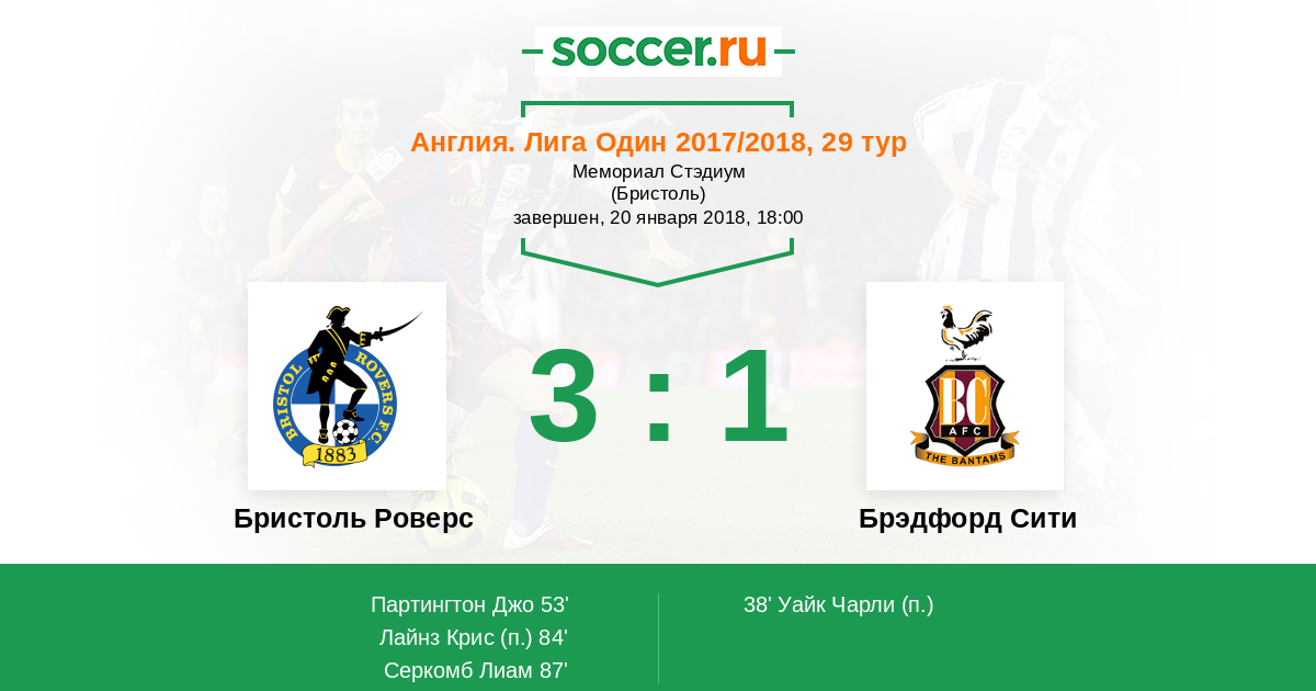 Бристоль Роверс - Брэдфорд Сити: обзор матча 20 января 2018