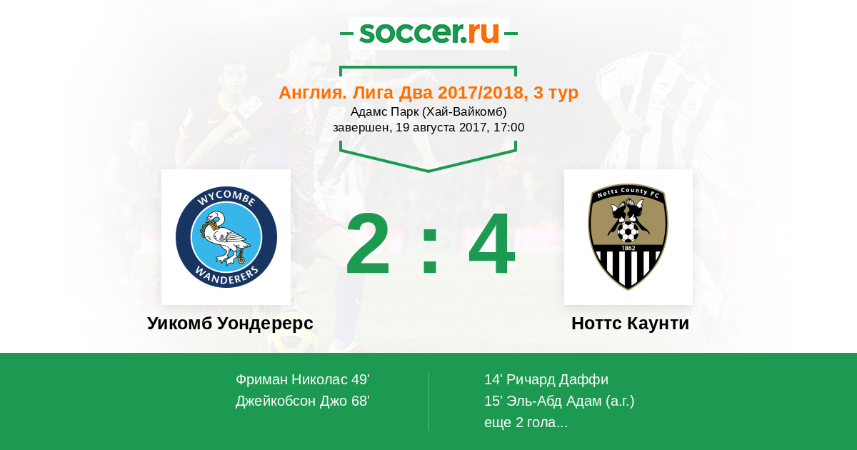 Уикомб Уондерерс - Ноттс Каунти: обзор матча 19 августа 2017
