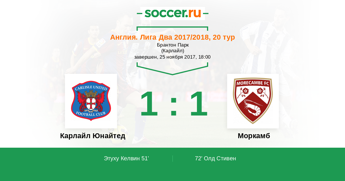 Карлайл Юнайтед - Моркамб: обзор матча 25 ноября 2017