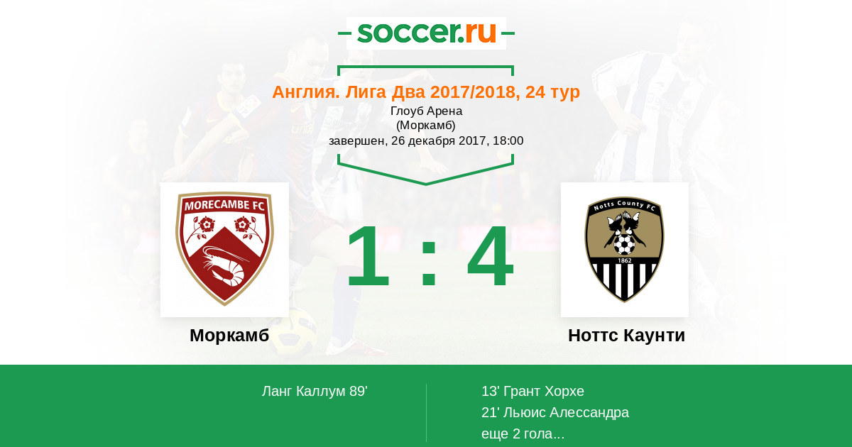 Моркамб - Ноттс Каунти: обзор матча 26 декабря 2017