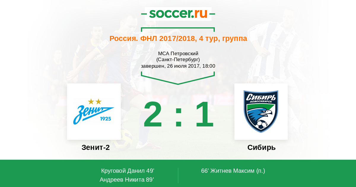 Зенит-2 - Сибирь: обзор матча 26 июля 2017
