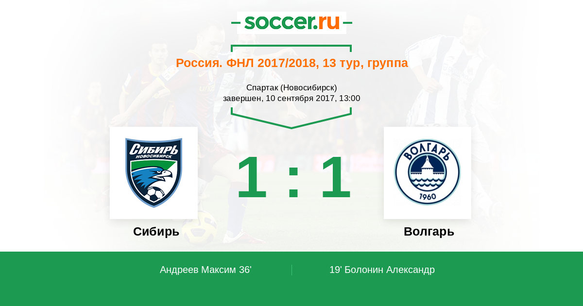 Сибирь - Волгарь: обзор матча 10 сентября 2017