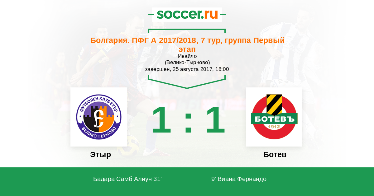 Этыр - Ботев: обзор матча 25 августа 2017