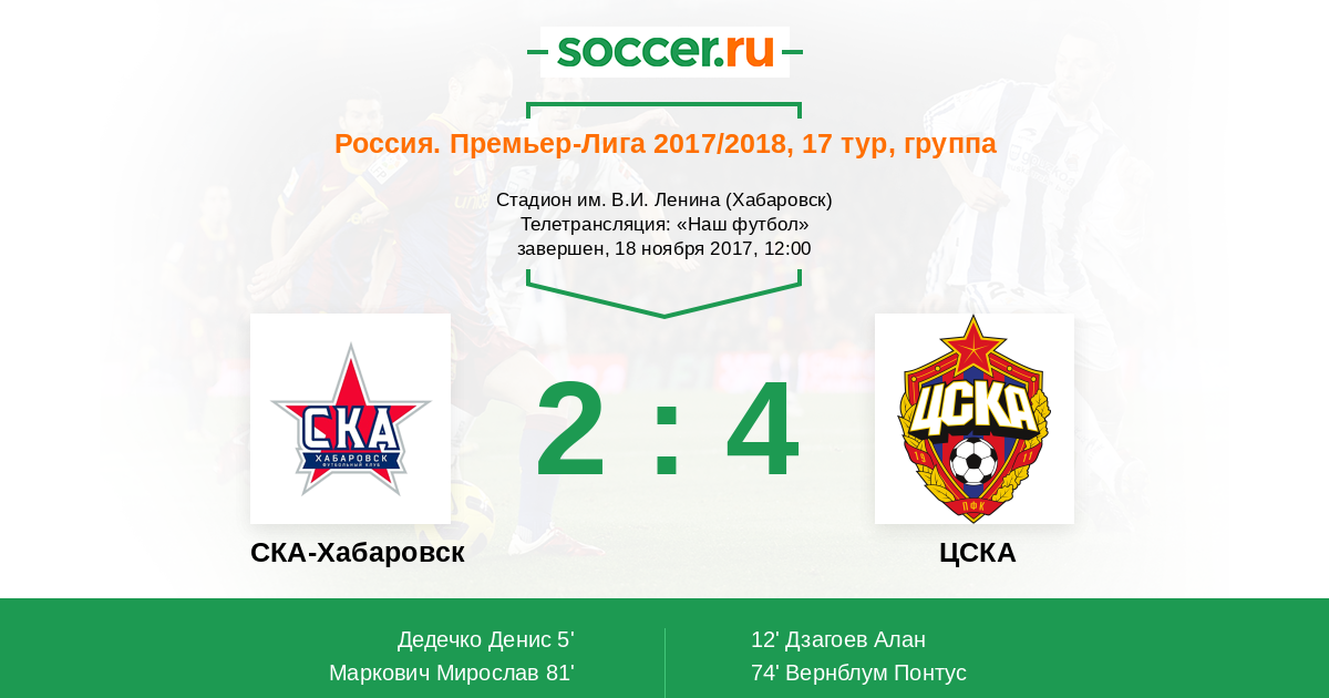 ЦСКА | 30 | 17 | 7 | 6 | 15 | 49:23 | 58 |