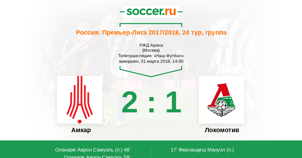 Локомотив М | 30 | 18 | 6 | 6 | 16 | 41:21 | 60 |