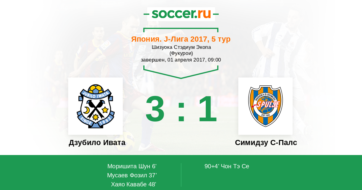 Дзубило Ивата - Симидзу С-Палс: обзор матча 1 апреля 2017