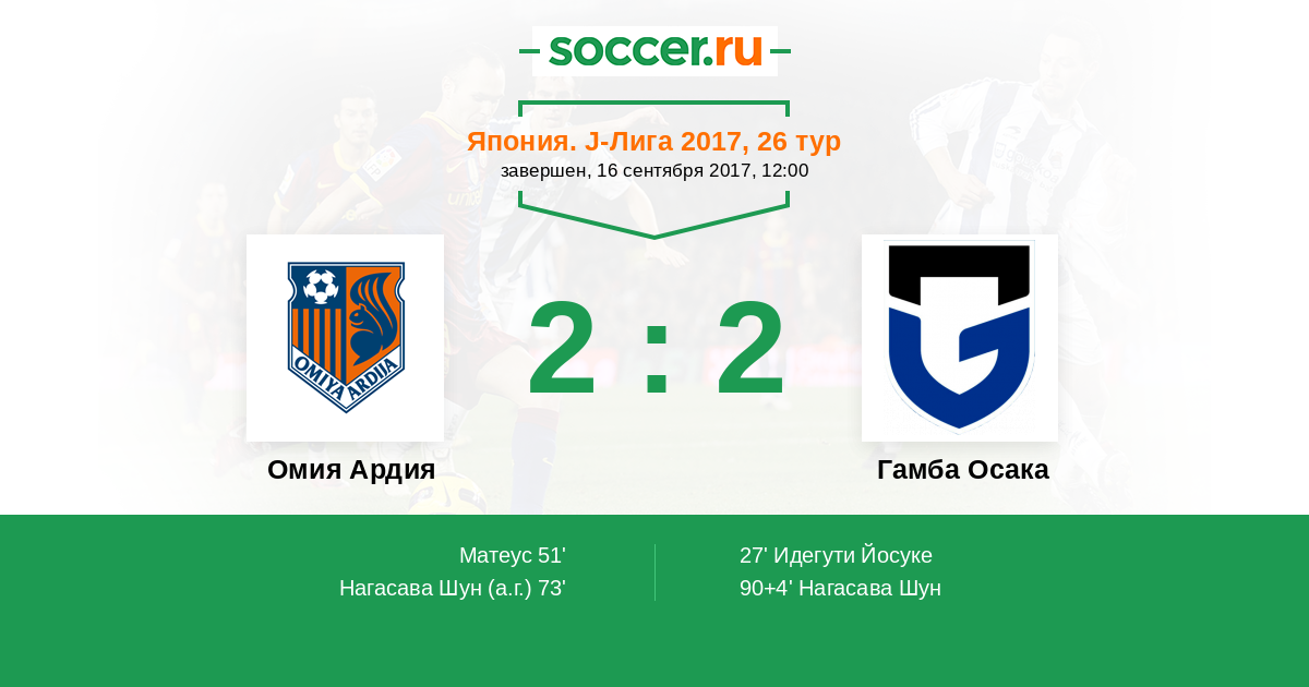 Омия Ардия - Гамба Осака: обзор матча 16 сентября 2017