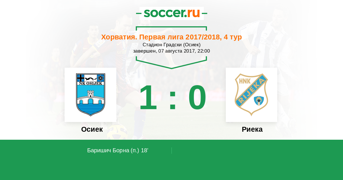 Осиек - Риека: обзор матча 7 августа 2017