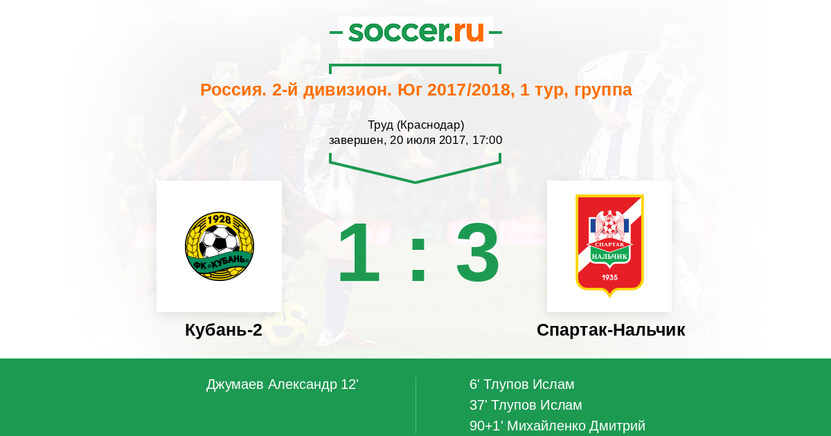 Кубань-2 - Спартак-Нальчик: обзор матча 20 июля 2017