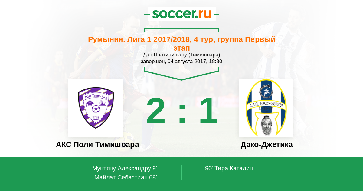 АКС Поли Тимишоара - Дако-Джетика: обзор матча 4 августа 2017