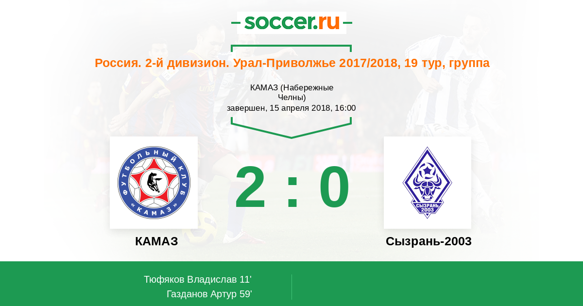 КАМАЗ - Сызрань-2003: обзор матча 15 апреля 2018