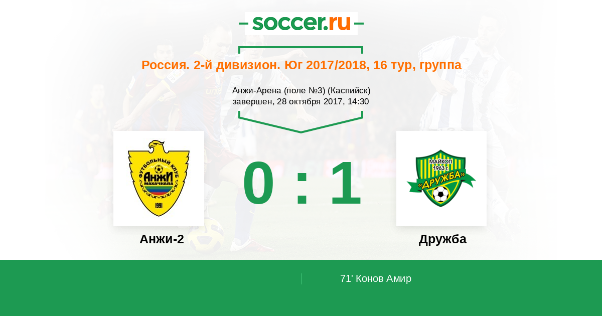 Анжи-2 - Дружба: обзор матча 28 октября 2017
