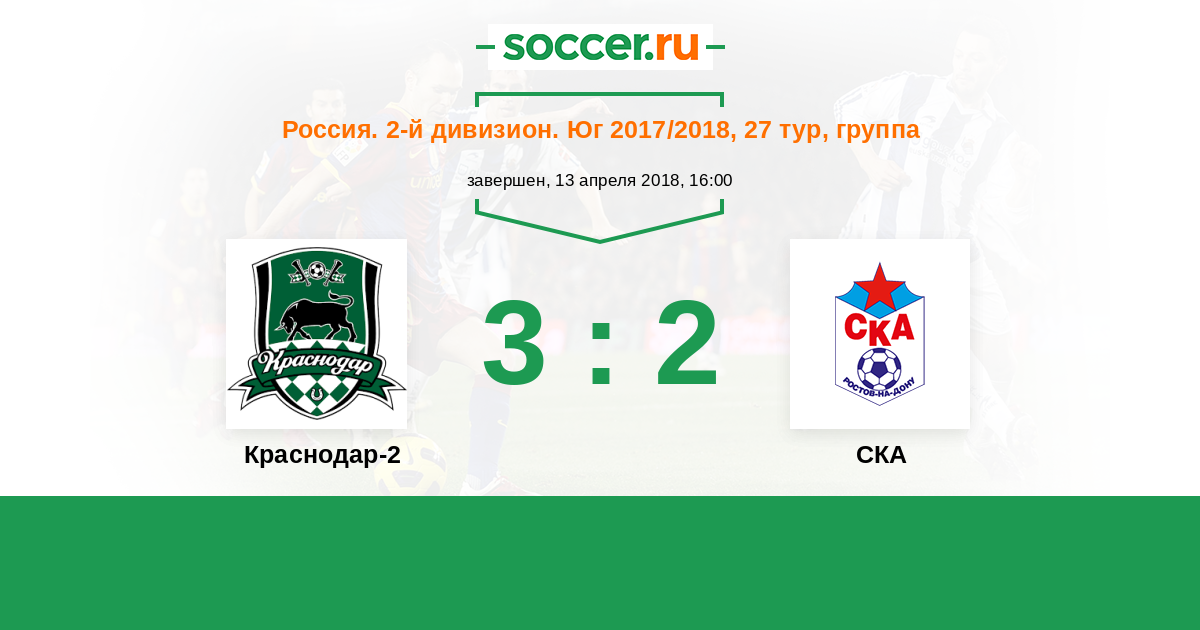 Краснодар-2 - СКА: обзор матча 13 апреля 2018