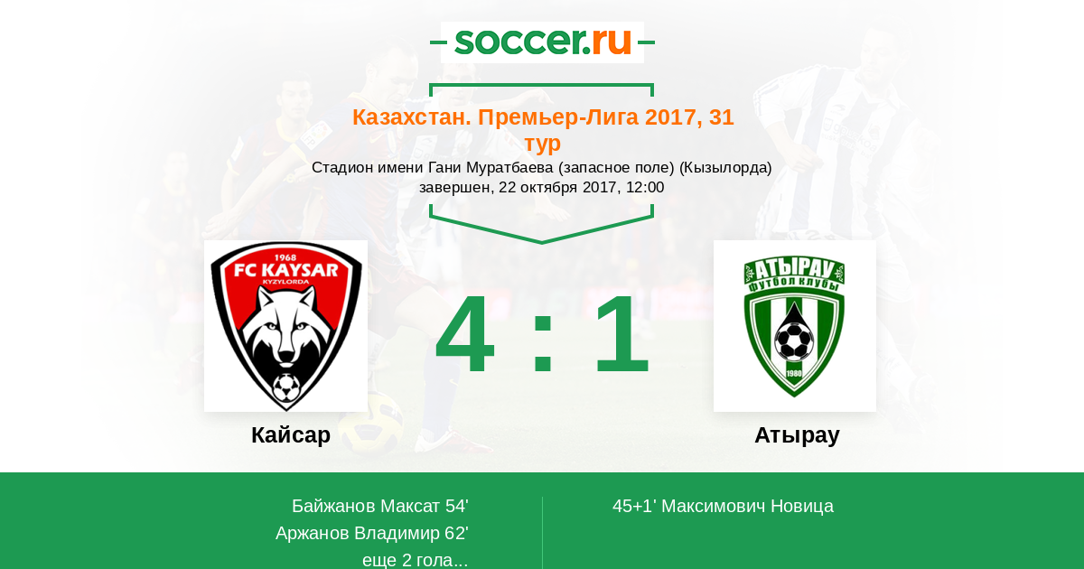 Кайсар - Атырау: обзор матча 22 октября 2017