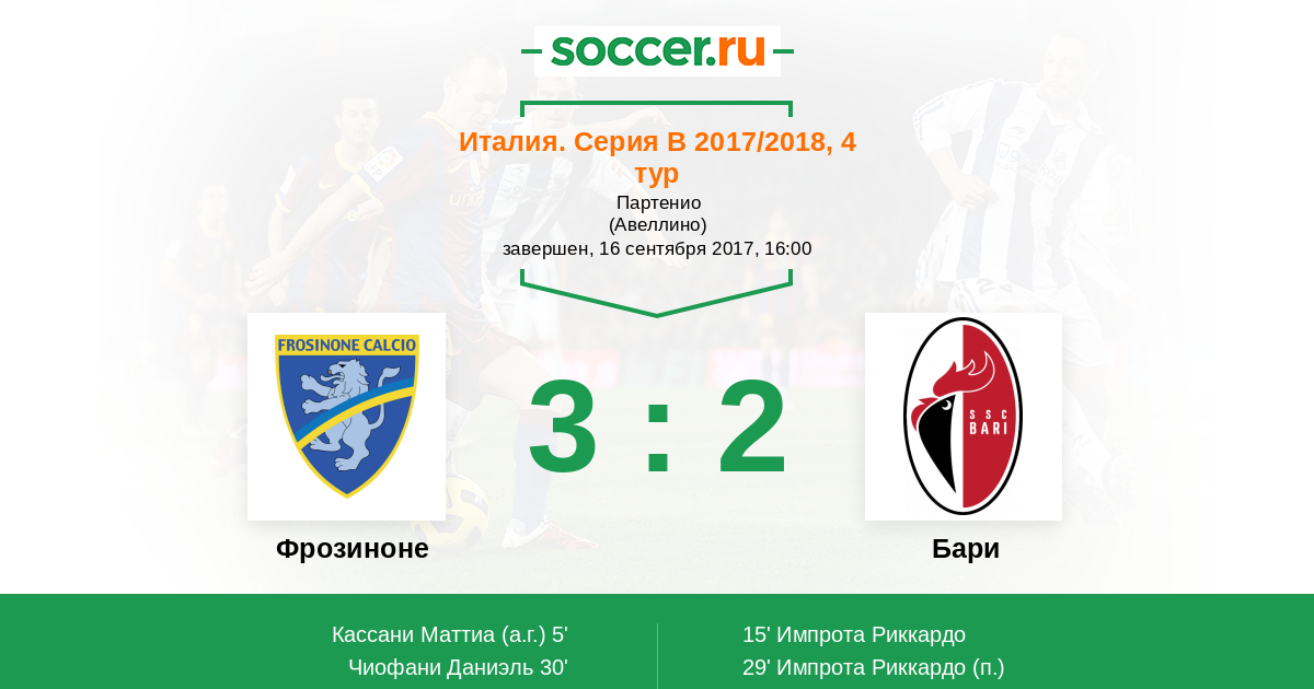 Фрозиноне - Бари: обзор матча 16 сентября 2017